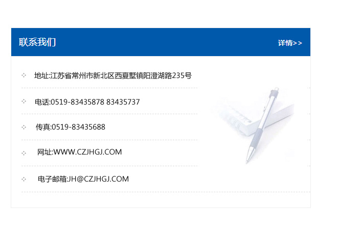 傳真:0519-83435688    郵編:213135    網址:WWW.czjhgj_com.akdmf.com    電子郵箱:JH@czjhgj_com.akdmf.com